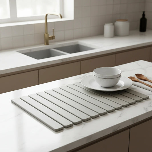 | Tapis minéral évier | Séchage express, zone évier propre et stable. |