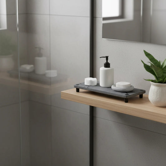 - Privilégiez matériaux compatibles bain : minéral microporeux, bois traité, inox brossé.